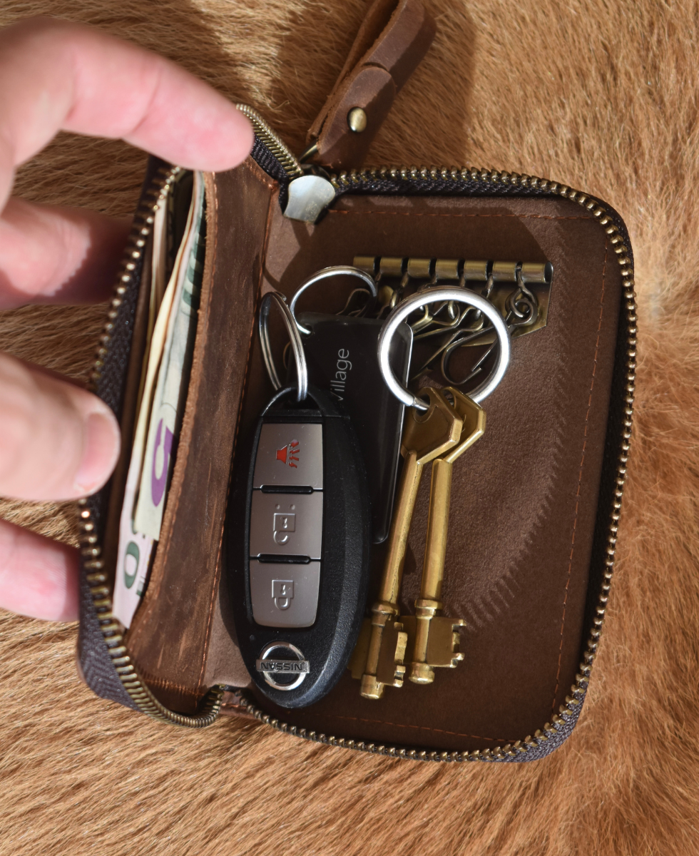 ¿Llaves desparramadas como si fueran estrellas fugaces en el fondo de tu bolso o mochila? Nuestro portallaves de cuero llega al rescate . Organiza tus llaves con estilo y olvídate de los rayones en el celular, el ruido incómodo y las búsquedas interminables en la cartera o el bolsillo. Un diseño elegante, compacto y resistente.